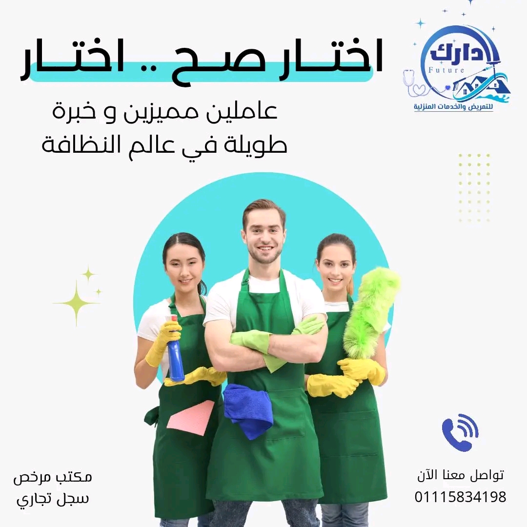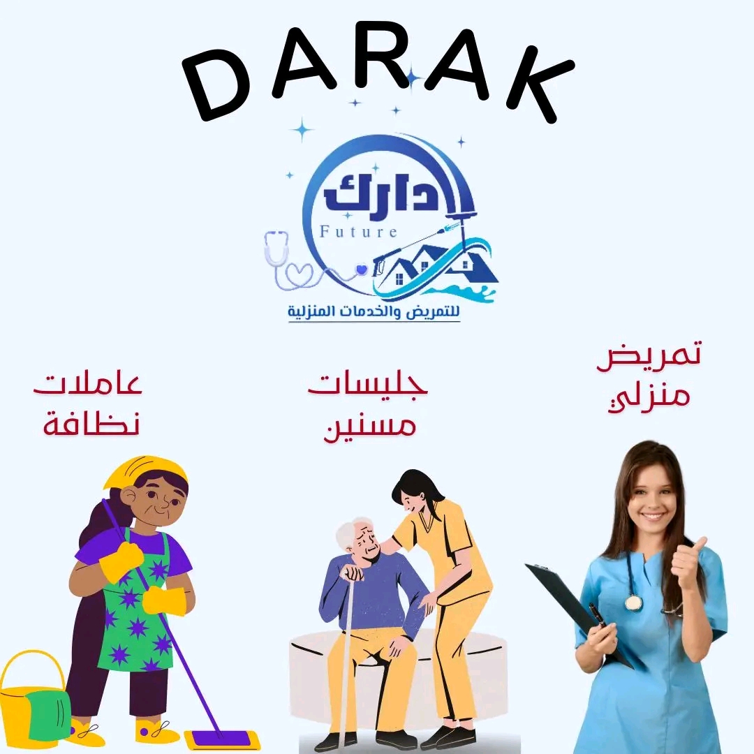 لا تفوت الفرصة! احجز خدمتك الآن مع شركة دارك واستفد من الخصم الفوري على خدمات عاملات النظافة المحترفات، جليسات المسنين، والتمريض المنزلي.